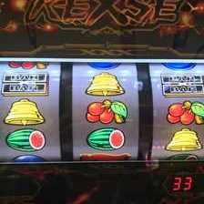 (3)さらに次ゲームで 左:X(3連の一番下)・スイカ・ベル 中:スイカ・赤7・ベル 右:正確には覚えていないですが、真ん中がスイカだったと
