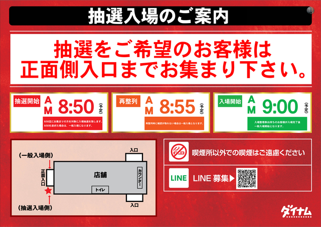 8:50Ëø¤Ë¤ª½¸¤Þ¤ê¤ÎÊý¤òÂÐ¾Ý¤ËÆþ¾ìÃêÁª¤òÃפ·¤Þ¤¹¡£8:50¤ò²á¤®¤¿¾ì¹ç¤Ï¡¢°ìÈÌÆþ¾ì¤Ë¤Ê¤ê¤Þ¤¹¡£ | |