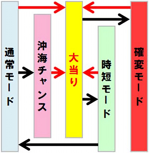 沖海チャンス突入時にハイビスカスが落下すれば、16R確変大当りの「沖海ボーナス」へ突入し、ラウンド終了後は電サポ付き確変の「確変モード」へ突入する。
