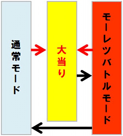 出玉のカギとなる電サポ付きST(回数切り確変)110回転の「モーレツバトルモード」は、全ての大当り後に突入。