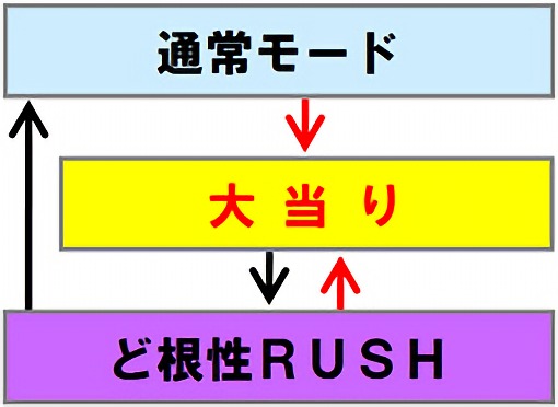 なお、初回大当りで電サポ付きST34回転+時短36回転の「ど根性RUSH」へ突入できなくても、時短70回転の「ど根性RUSH」へ突入となるため、その滞在中に大当りを引き当てれば電サポ付きST34回転+時短36回転の「ど根性RUSH」へ突入する。