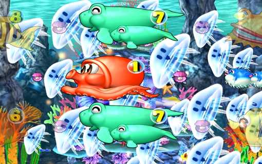 クラゲが右に吸い込まれ、タッチでクラゲor魚群が出現。