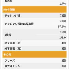 | 設定6 | 56.3% | 37.5% | 3.1% | 3.1% |