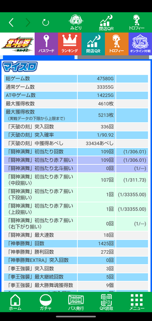 - 初代と比較して純増は上がったものの、1ラウンド30ゲームで勝舞魂を貯めにくく、マイルドな仕様になったとの評価。天破のガセ煽りが多い点や、ATレベル4や北斗揃いでも早期終了するケースがある一方、軽快に勝負を重ねて1500枚超えすることもあり、波の荒さと優遇冷遇について議論されている。