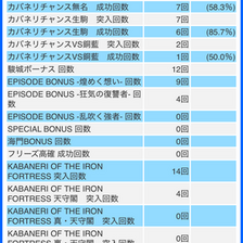 - 景之ST終了時に差枚数に応じて有利区間切断抽選があり、マイナス時は次回初当たりを景之ST以上にする仕様との推測。上位STで2000枚以上獲得するとエンディングへ移行する模様。黒血漿の取得が次回の優遇に影響するため、負のループに陥りやすいとの指摘もある。