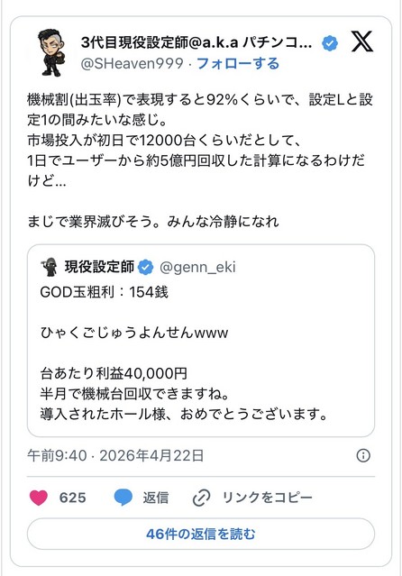 投稿本文:前任者天国からおそらく80%継続の4471枚自身PGGか…