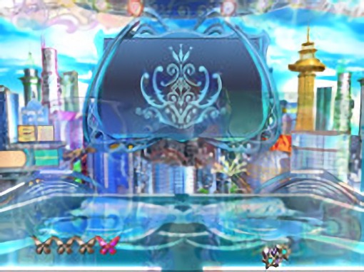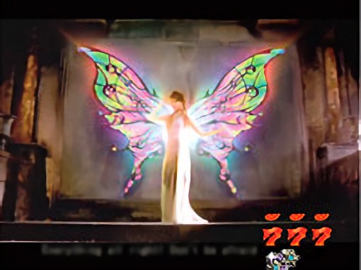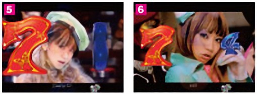 液晶上部のバタフライ役モノが3段階で広がっていくステップアップ予告。