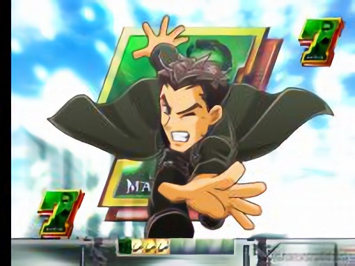 ネオがジャンプに成功すれば大当りとなるリーチ演出。