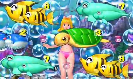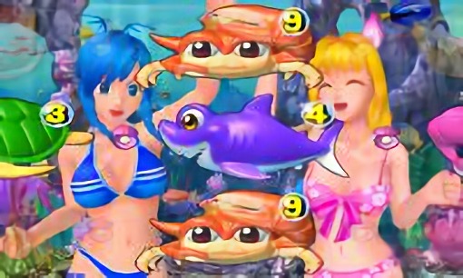 マリンちゃんの視線の方向や表示されるキャラ・アイテムによって発展先や期待度が変化。