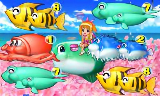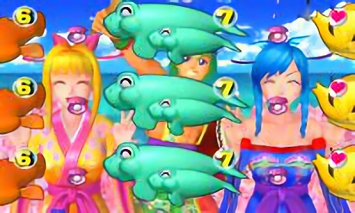 親指を立てている(海)、リボンが垂れている(マリン)、扇子がささっている(沖縄)というように、モード毎にチャンスUPパターンが存在する。