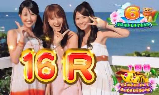 ボタン連打で桜フラッシュが発生すれば16R(グレートラッキー)が確定。
