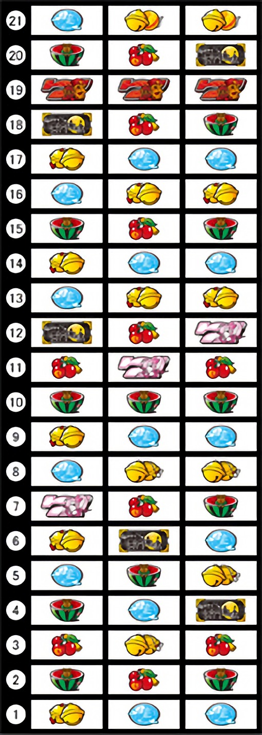 左リール枠内に、BARの下にあるチェリー(リール表の11番)を狙う。