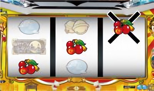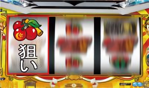 枠内にチェリーが停止した場合は、中リールを適当打ちし、右リール上段にチェリーを狙う。