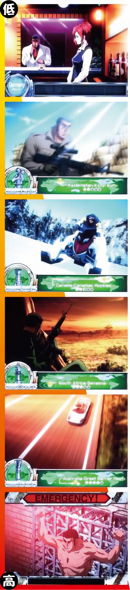 通常時の基本となるステージは6種類で、「ドイツ<カザフスタン<カナダ<南アフリカ<オーストラリア<拷問」で前兆期待度アップ。