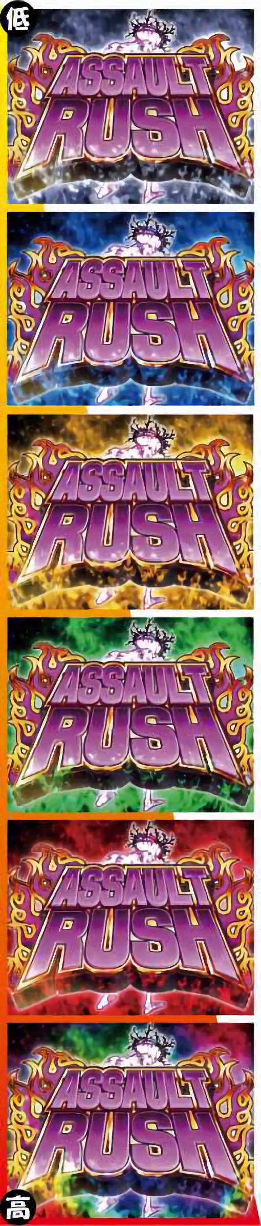 - 「アサルトRUSH」当選確率が1/3.3になる、「アサルトRUSH」の高確率ゾーン。