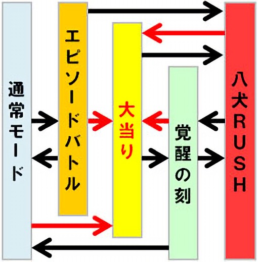 八犬RUSH中は3種類のルートが存在し、突入ルートによってその後の運命が決定。
