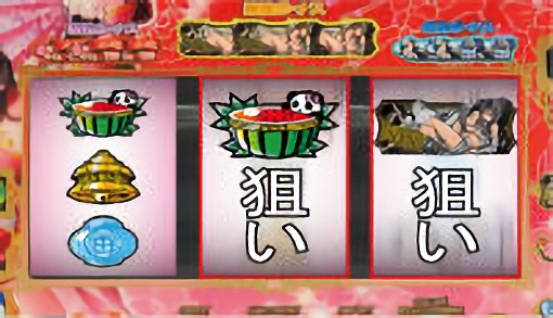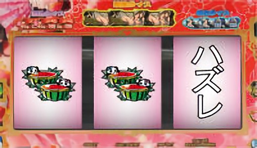 スイカが停止した場合は、中リールにスイカを狙い、右リールにBAR図柄を狙う。