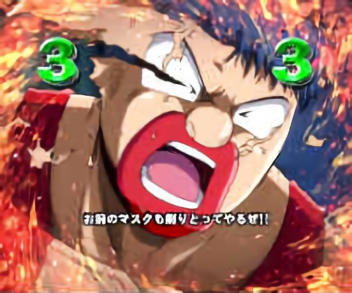 カットインは「青・赤・ゼブラ柄・火事場のクソ力」の4種類があり、赤なら大チャンス、ゼブラ柄ならさらに大チャンス、火事場のクソ力なら大当り濃厚。