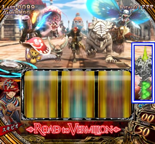 - 10Gor20G継続するチャンスゾーン。ART「ROAD to VERMILION」濃厚の奇数図柄揃い確率が大幅アップ。