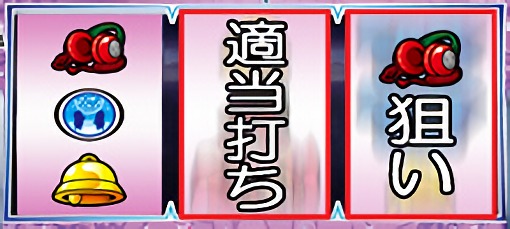 角チェリーが停止した場合は、中リールを適当打ちし、右リールにチェリー図柄を狙う。