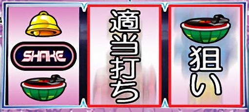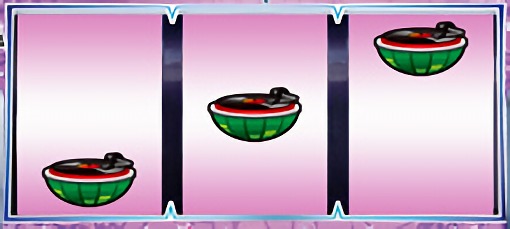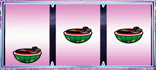 スイカが停止した場合は、中リールを適当打ちし、右リールにスイカ図柄を狙う。